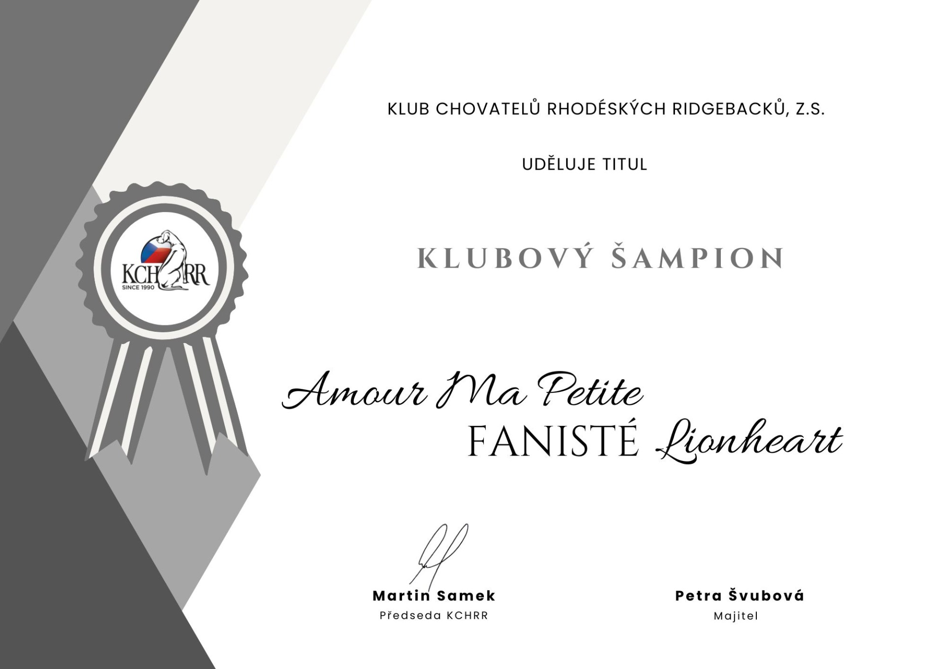 KCHRR - vzhledem ke konání pouze jedné klubové výstavy v roce 2023 tohoto klubu, kdy Bíbanka ještě nebyla na světě nebudeme nejspíš přijati do celoročních soutěží, bohužel podmínka je u kategorie štěňat špatně nastavená v případě jedné výstavy v roce